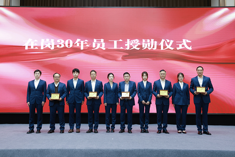 此次大會(huì),還舉行了冶金物資榮耀在崗30年紀(jì)念章授勛儀式。由公司新入職的五名員工代表向前輩獻(xiàn)上象征著榮譽(yù)與傳承的勛章。