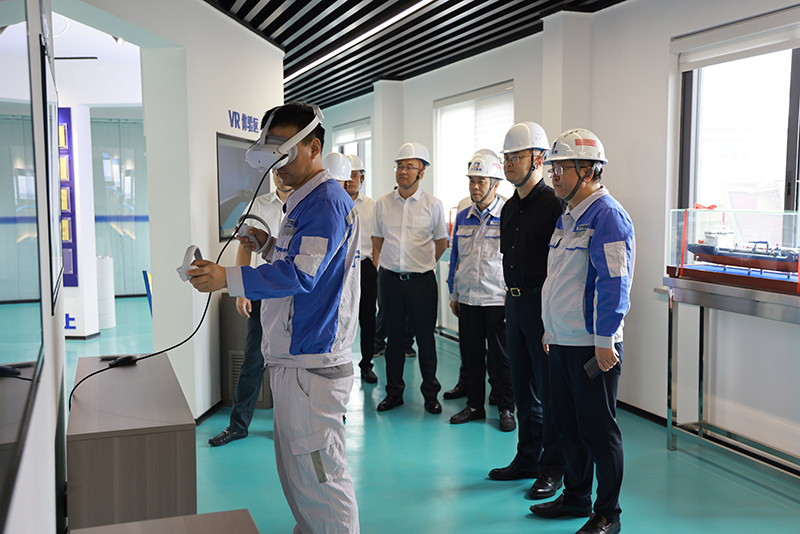 鄭浩一行參觀了VR體驗(yàn)中心、船舶修造現(xiàn)場,感受寧興船舶數(shù)字化轉(zhuǎn)型升級的成效,并圍繞高附加值船舶修造、船舶智能制造配套中心等方面展開深入交流。此次考察增進(jìn)了彼此的了解,為雙方后續(xù)在特種鋼材供應(yīng)、零部件配套等領(lǐng)域合作提供實(shí)踐參考,進(jìn)一步挖掘合作共贏的發(fā)展空間。